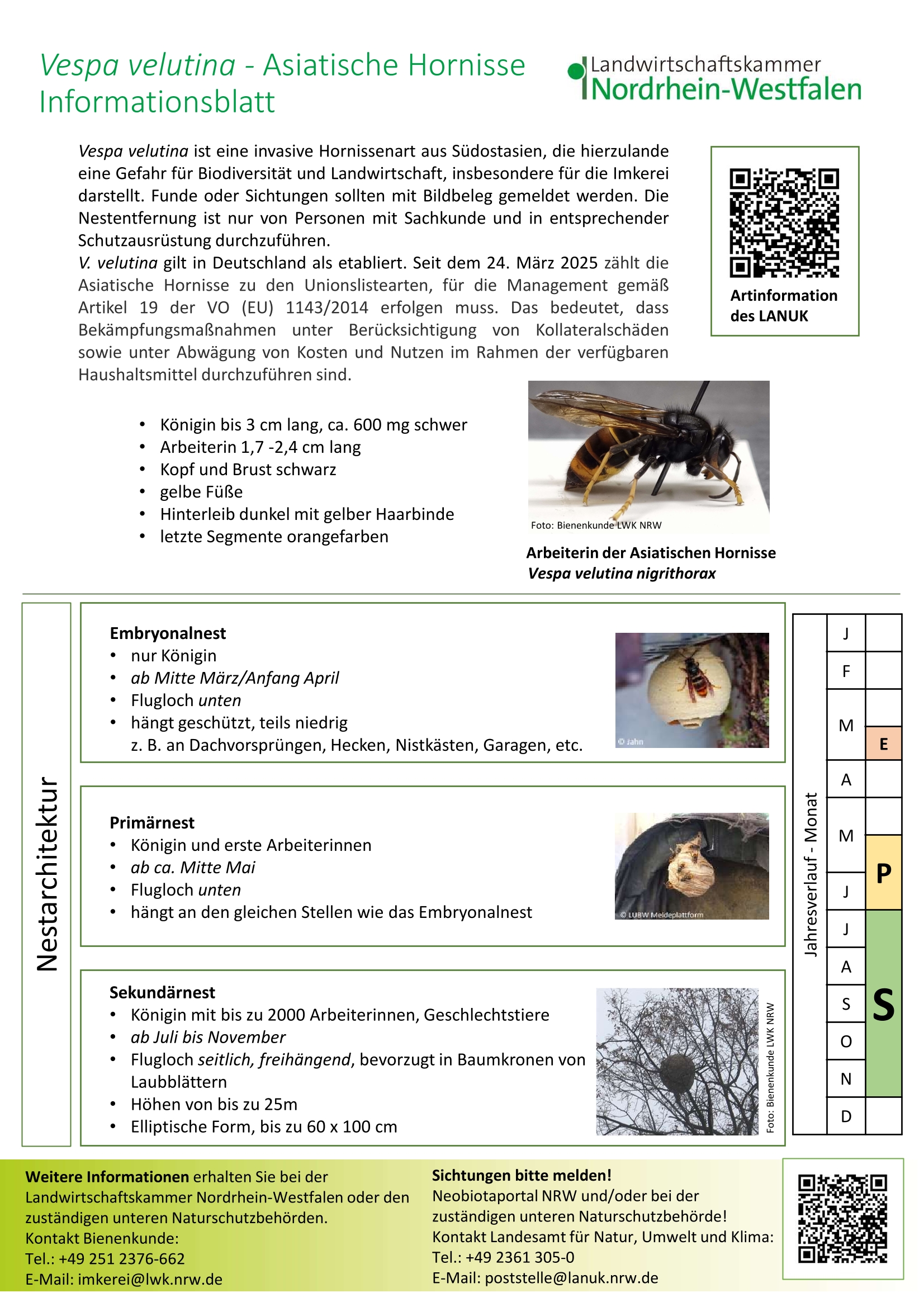 LANUK (Landesamt für Natur, Umwelt und Klima NRW) Informationen zur Asiatischen Hornisse, Meldungen